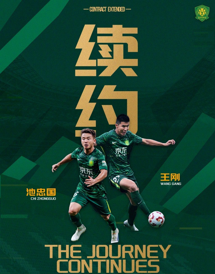 此外,国安还官方宣布与36岁后卫王刚、36岁中场池忠国完成续约1年。作为队长王刚共为球队出场169场,收获4粒进球,16次助攻。池忠国则共为球队出场201场,收获4粒进球,5次助攻。